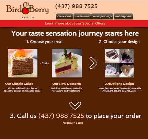 - Optimized for local Toronto search so customers looking for “custom cakes Toronto” or “wedding cakes Toronto” can discover Bird & Berry online.